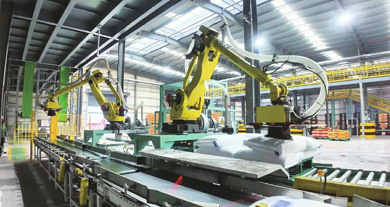 心连心集团的机器人在行云流水地高效装运化肥